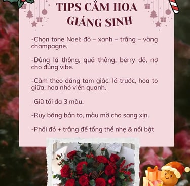 Giáng Sinh là thời điểm mà mọi không gian đều trở nên ấm áp, rực rỡ và đầy cảm hứng. Để trang trí nhà cửa hoặc cửa hàng thêm nổi bật, những bình hoa Giáng Sinh luôn là lựa chọn tuyệt vời. Dưới đây là những tips cắm hoa được Lumi Fleur – tiệm hoa tươi tại Huế – gợi ý để bạn dễ dàng tạo nên một tác phẩm tinh tế và mang đậm sắc màu lễ hội.