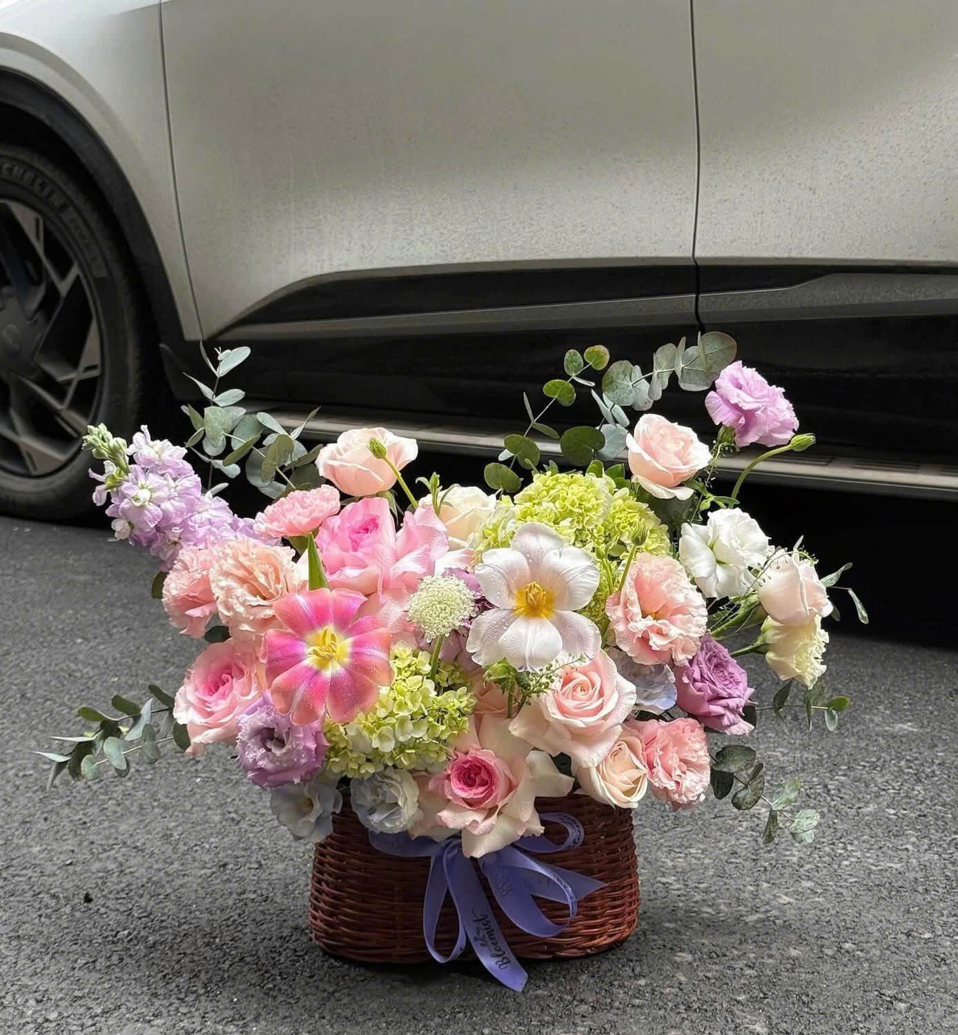 Lưu ý: Thành phần hoa và kiểu giỏ có thể thay đổi nhẹ theo mùa nhưng vẫn đảm bảo tone màu và bố cục tổng thể